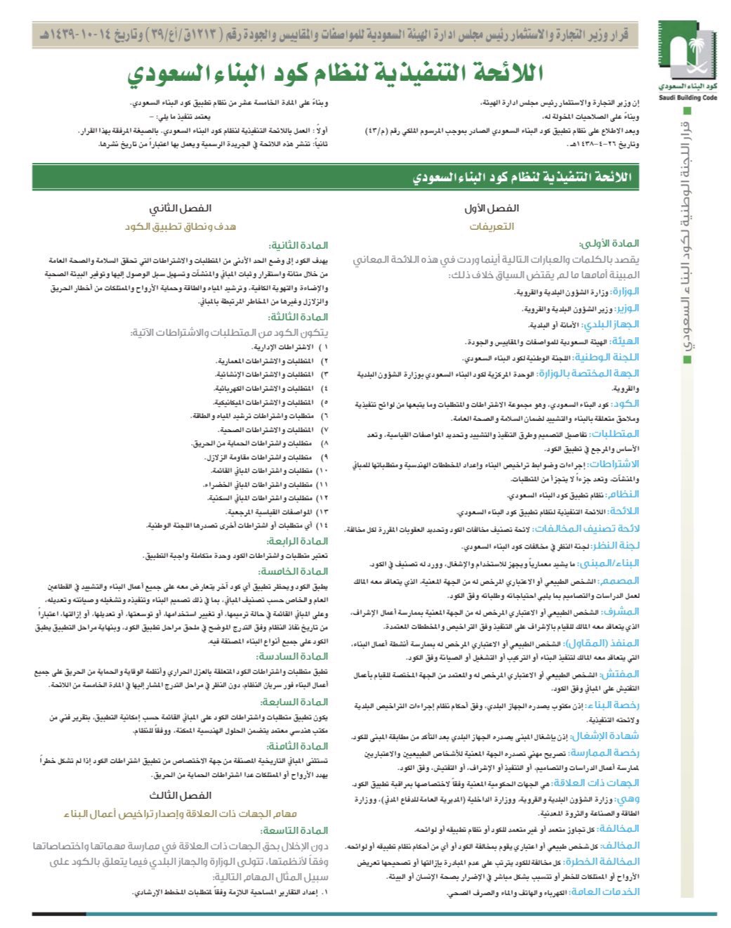 الالئحة التنفيذية تطبيق كود البناء السعودي لنظام
