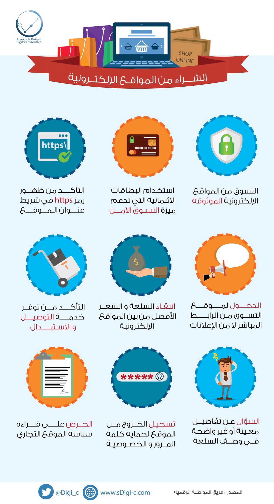 Uzivatel المواطنة الرقمية Na Twitteru إرشادات و نصائح عند الشراء من المواقع الإلكترونية والتي تعد من التجارة الرقمية أحد محاور المواطنة الرقمية