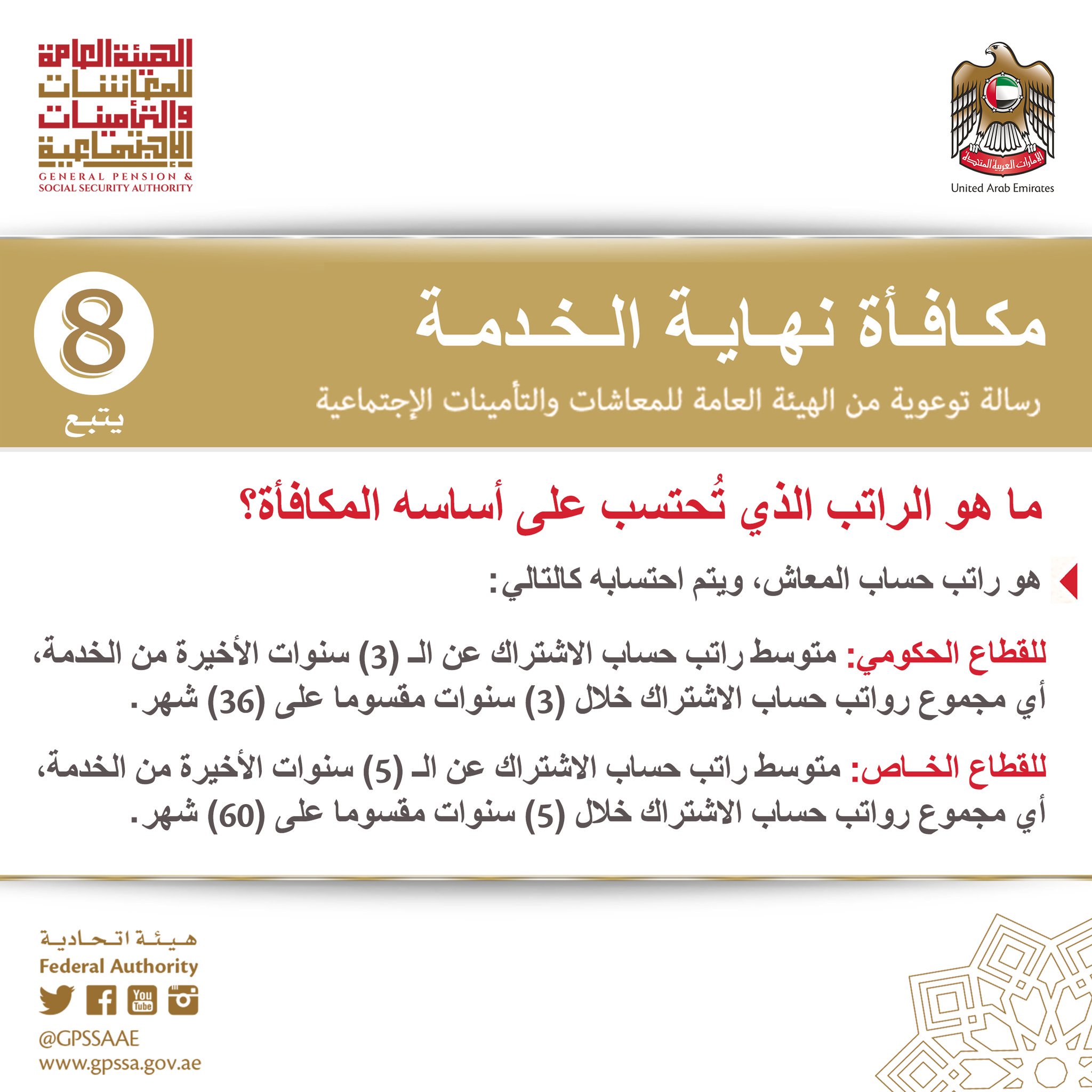 هيئة المعاشات On Twitter معلومة ما هو الراتب الذي تحتسب على أساسه مكافأة نهاية الخدمة نهاية الخدمة معاشات الإمارات الإمارات