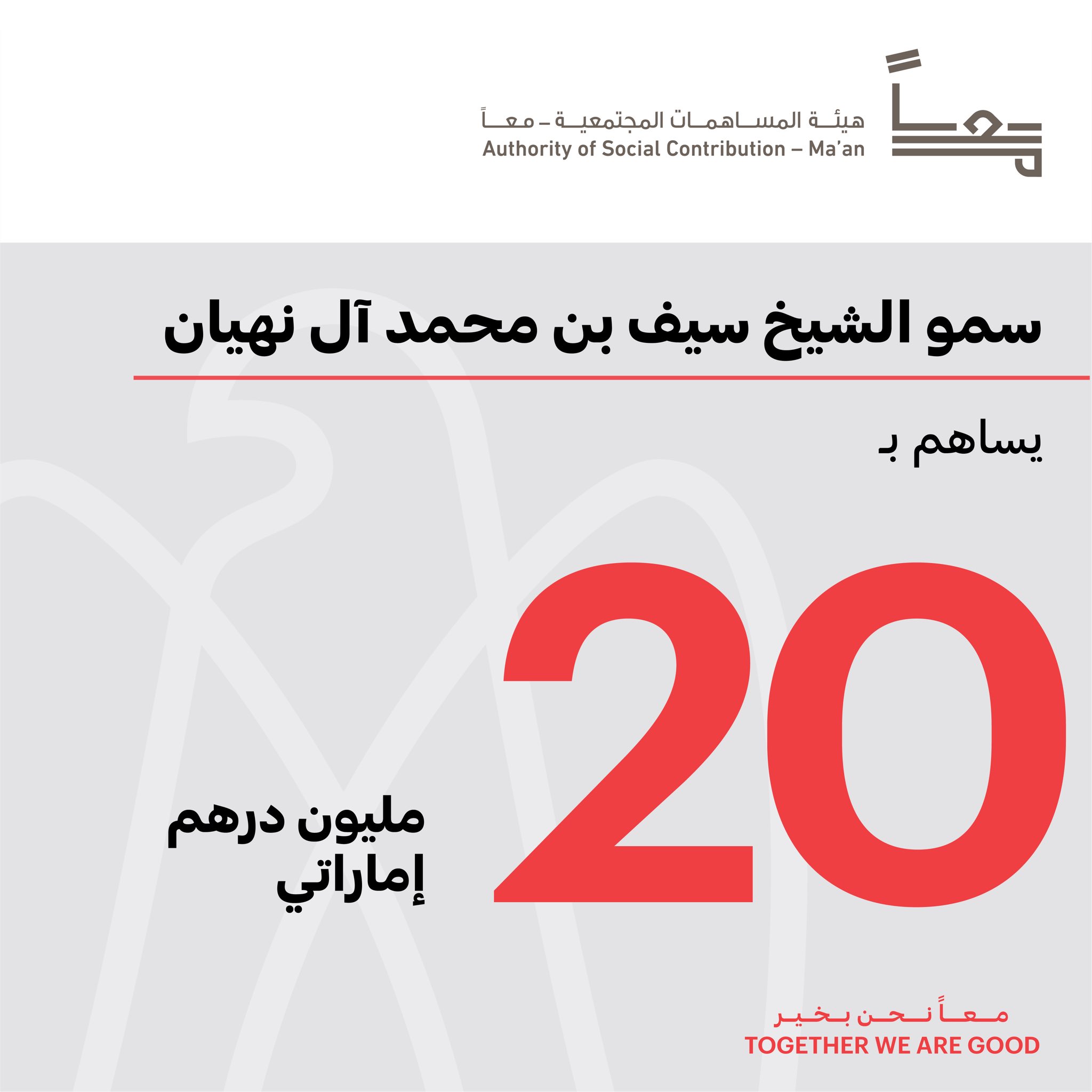 مكتب أبوظبي الإعلامي Auf Twitter ساهم سمو الشيخ سيف بن محمد آل نهيان بقيمة 20 مليون درهم لصالح برنامج معا نحن بخير الذي أطلقته هيئة المساهمات المجتمعية معا تعزيزا لتضامن المجتمع في
