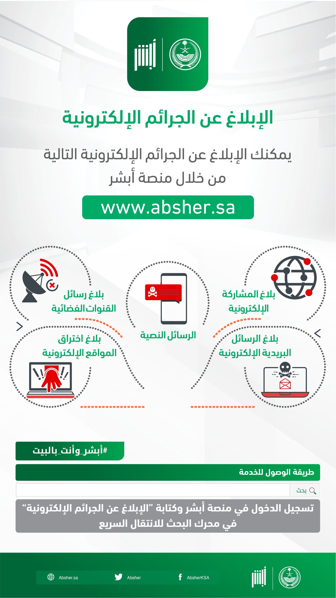 أبشر On Twitter تعر ف على أنواع الجرائم الإلكترونية التي يمكن الإبلاغ عنها عبر حسابك في منصة أبشر Https T Co Snpbewozqy أبشر وأنت بالبيت Https T Co Ovrm09whns