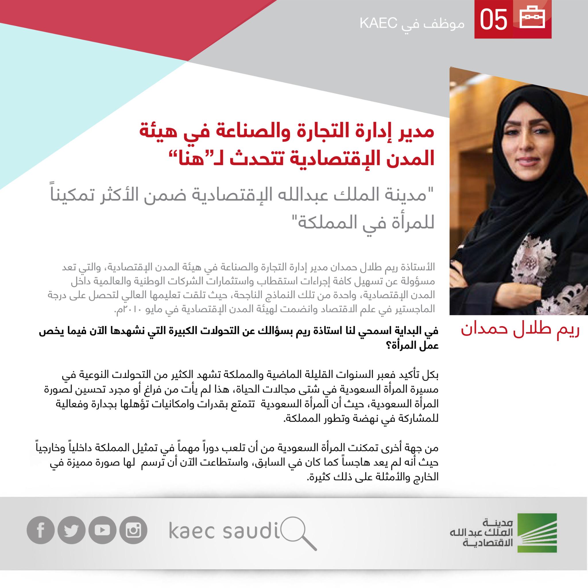 مدينة الملك عبدالله الاقتصادية En Twitter ريم حمدان مديرة إدارة التجارة والصناعة في هيئه المدن الاقتصادية في حوار لمجلة ه نا Kaec Http T Co 0nggzkueke Http T Co Fx6bhvqgvn